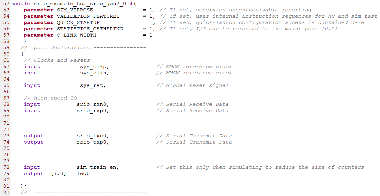 顶层模块srio_example_top.v源码的端口定义如下