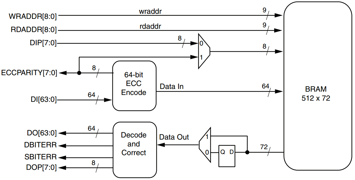 Block RAM的ECC(Error Correcting Code)结构如下图所示