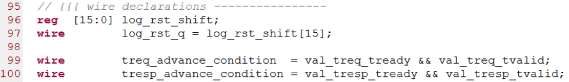 第193行到203行用来产生HELLO时序中的tready。源代码如下图所示