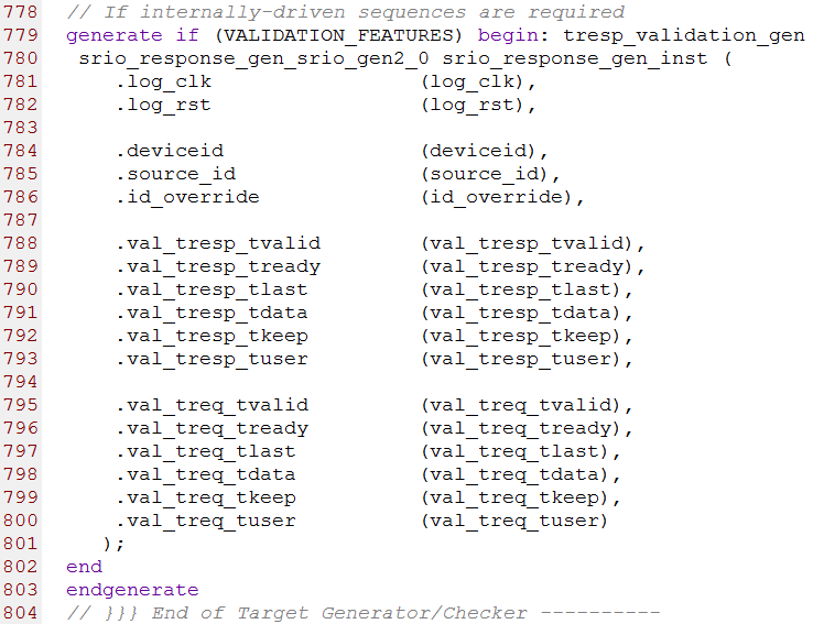 第779行到804行例化了srio_response_gen.v模块,这个模块用来产生响应事务。部分源码如下图所示