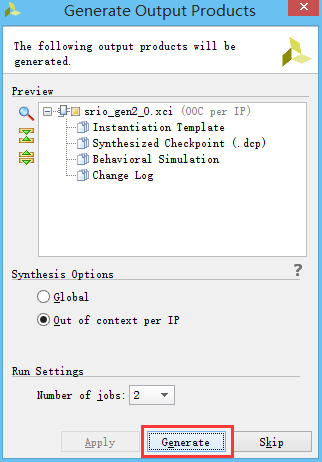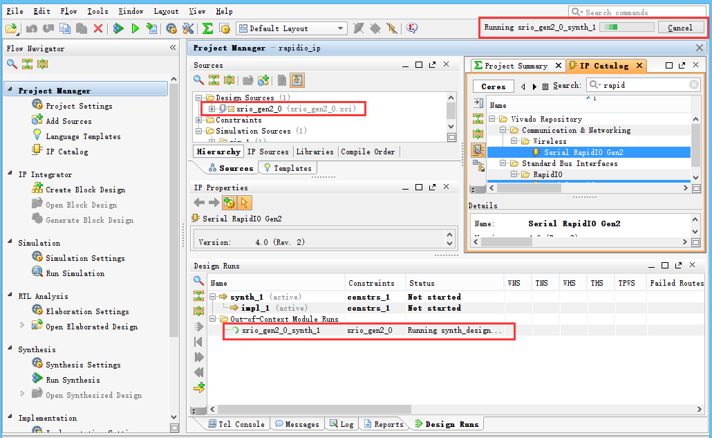 5、等待srio_gen2_0核综合完毕,可能会花几分钟的时间