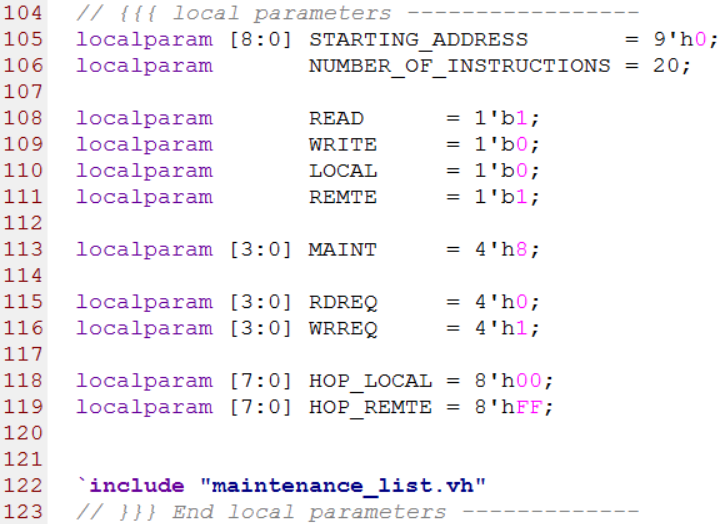 第105行到122行对maintenance_list.vh头文件中的参数进行了赋值,并引入了头文件,源代码如下图所示。