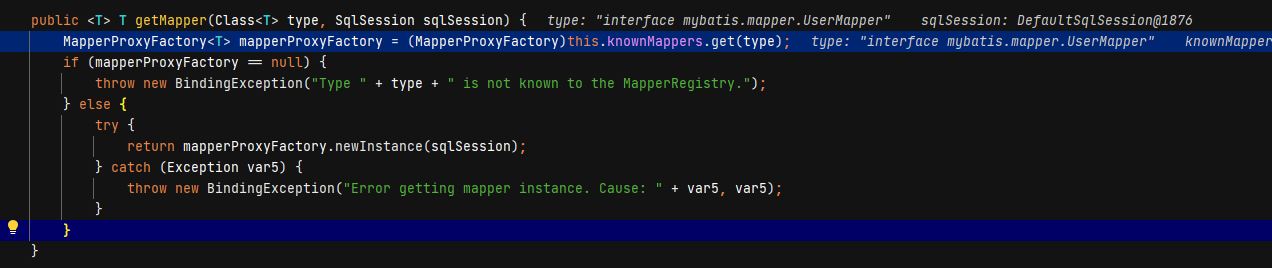 说明MapperProxy是通过jdk动态代理实现,既然说MapperProxy是个代理对象,从以上可以看出我们已经获取了Mapper的代理对象