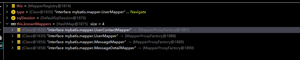 从debug可以看出,knownMapper已经初始化代码中所有的mapper对象