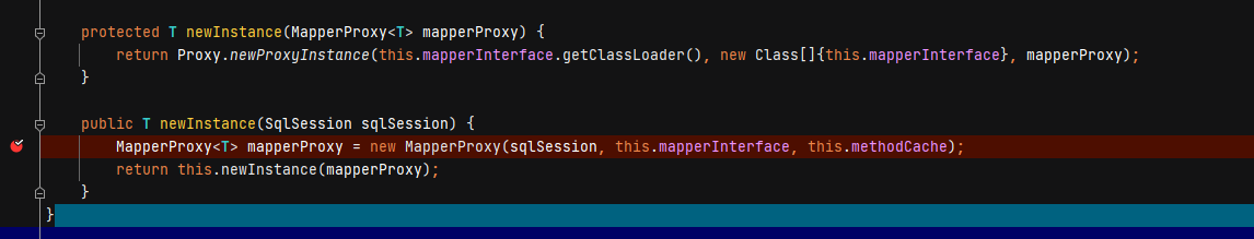 从MapperProxyFactory的实例化方法中可以看出,所有的Mapper对象都是通过MapperProxy<T>代理对象中获取的mapper对象