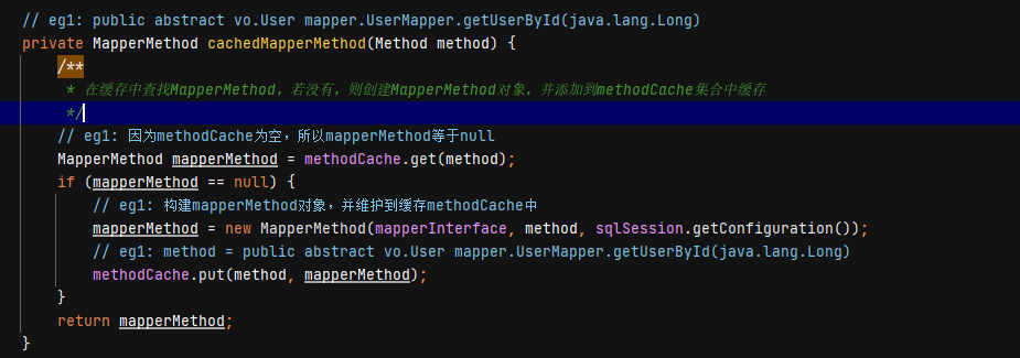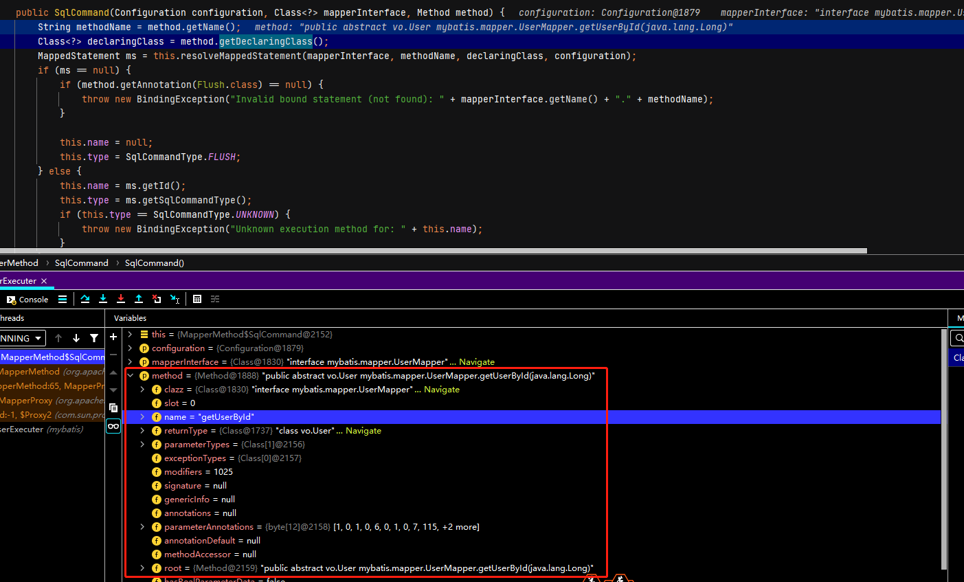 由源码可以看出,这步已经获取了MapperMethod对象,那我们看看源码是怎么获取的