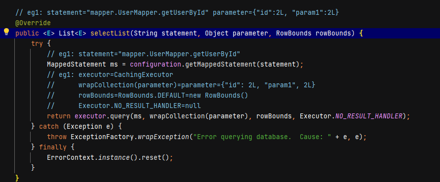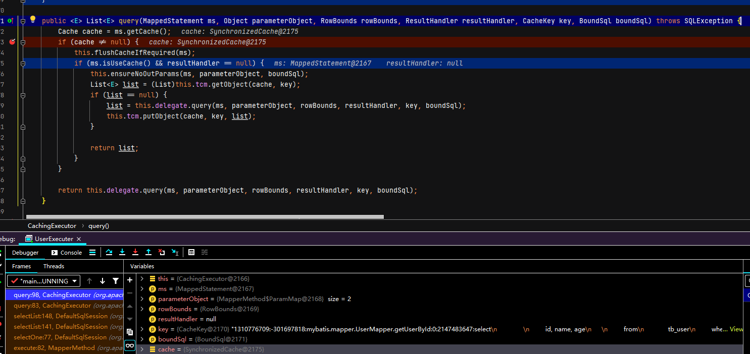 // eg1: sqlSession = DefaultSqlSession@1953 args = {2L}