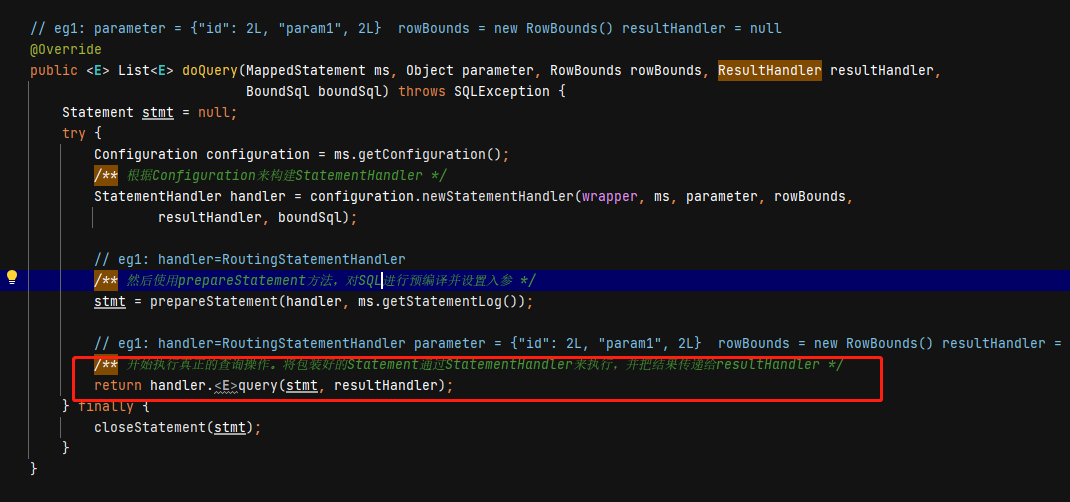 // eg1: 封装结果集 resultSetHandler=DefaultResultSetHandler