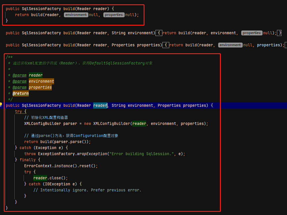 那么我们在构建SqlSessionFactory的时候,需要将xml文件/property文件/环境变量解析
