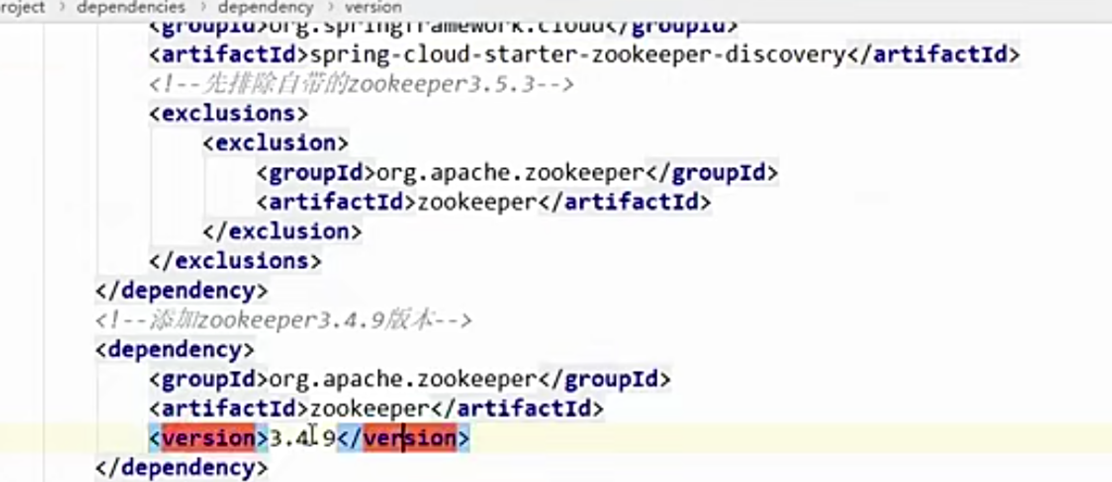 摘除原有的依赖,引入跟自己zookeeper版本相同的依赖就可以了