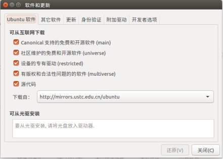 平台设置》软件和更新》 Ubuntu 软件,将设置修改成如下图所示: