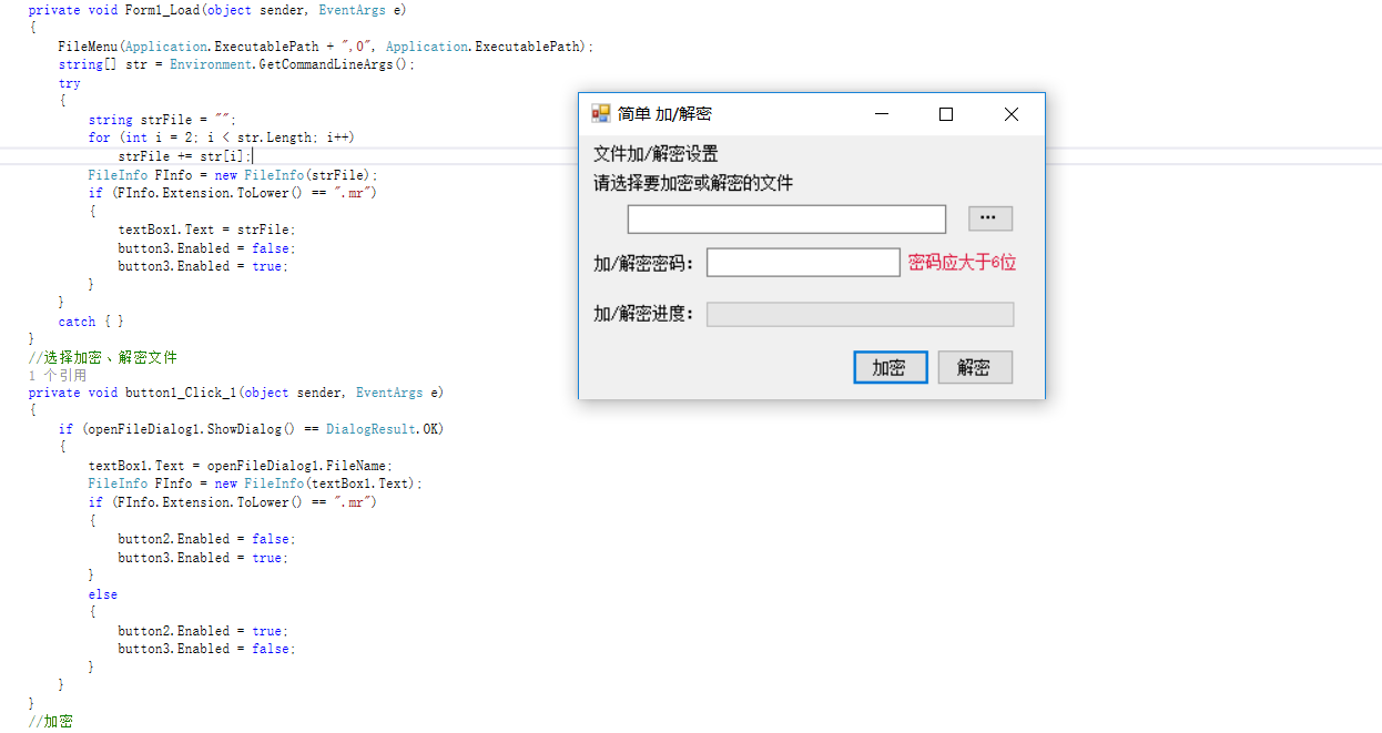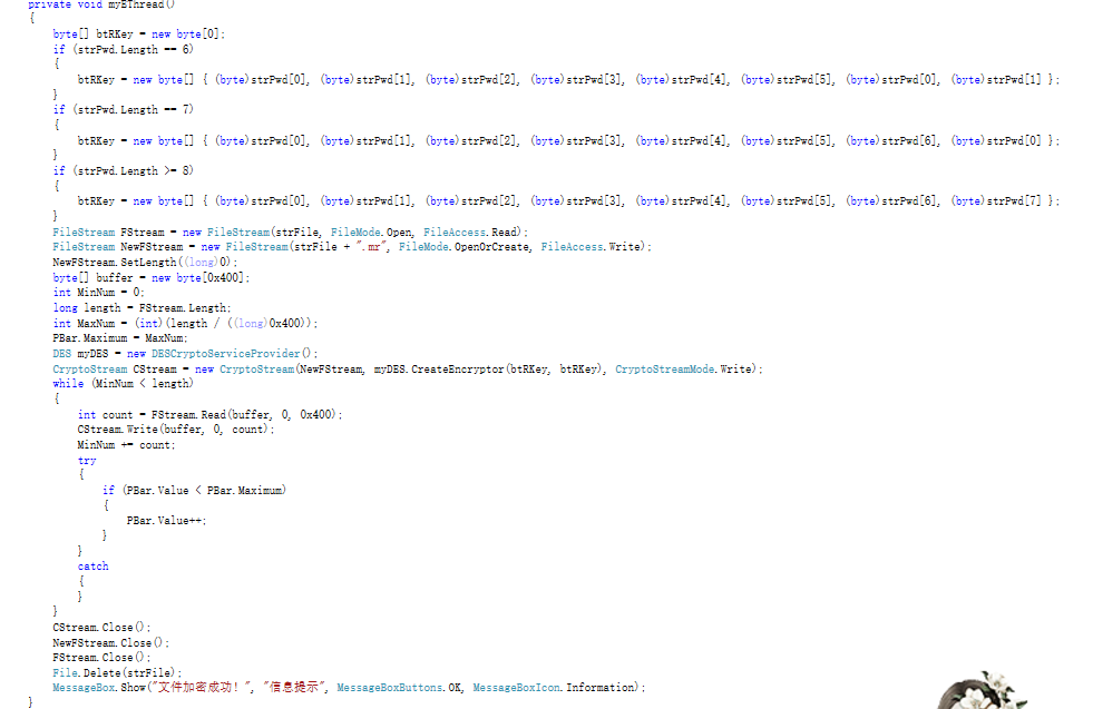 给文件添加个后缀(.mr)用于判断该文件是已经加密的状态,将内容乱码