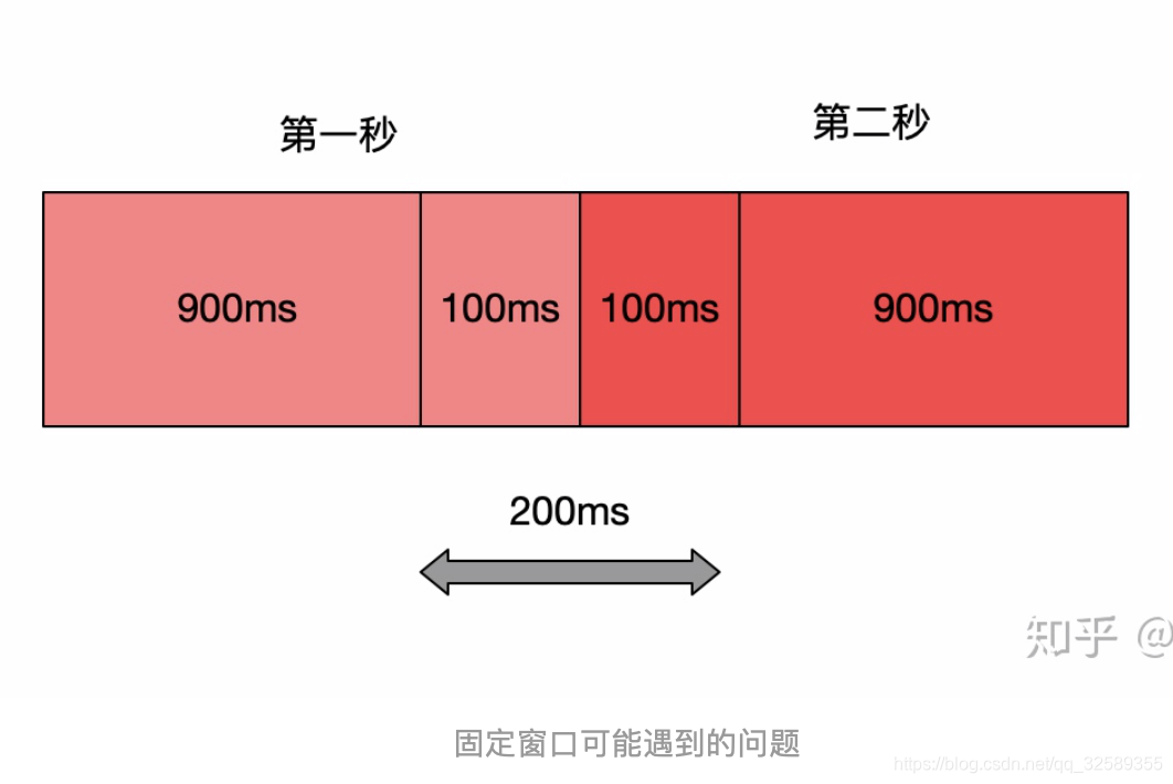 1秒钟1000个请求,在 第一秒的最后100ms,以及 第二秒 最开始100ms,都收到1000次请求。就会出现在这个 200ms 的周期中收到 2000次请求,并且限流通过,这就是 两倍的配置速率问题。
