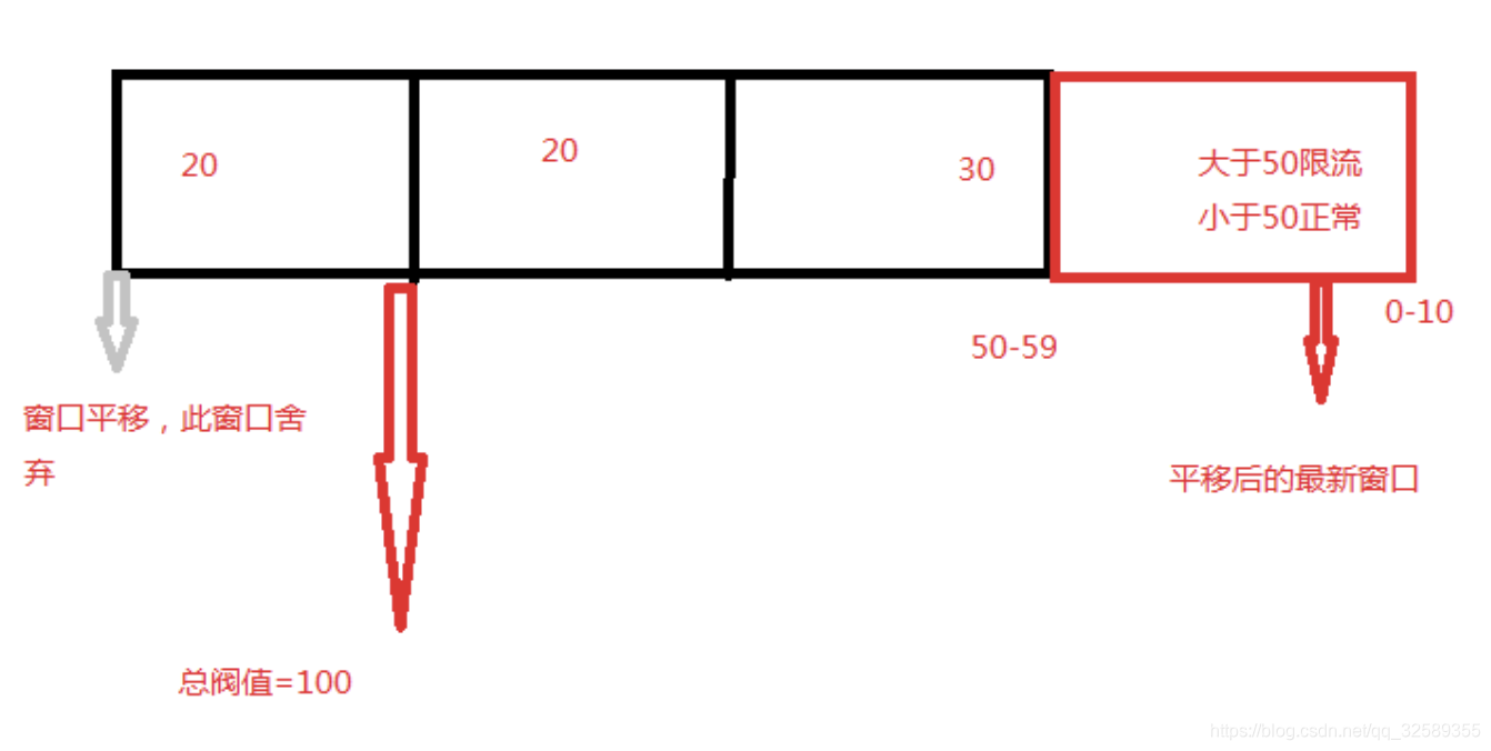 滑动窗口为固定窗口的改良版,解决了固定窗口在窗口切换时会受到两倍于阈值数量的请求,滑动窗口在固定窗口的基础上,将一个窗口分为若干个等份的小窗口,每个小窗口对应不同的时间点,拥有独立的计数器,当请求的时间点大于当前窗口的最大时间点时,则将窗口向前平移一个小窗口(将第一个小窗口的数据舍弃,第二个小窗口变成第一个小窗口,当前请求放在最后一个小窗口),整个窗口的所有请求数相加不能大于阀值。