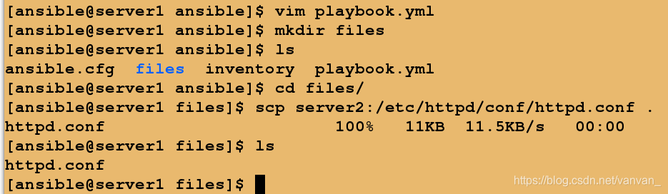 ansible playbooks 是使用ansible简单的配置管理部署系统的基础,使用YAML语法格式的配置文件。每一个playbook中包含一系列的任务。使用ansible playbook可以更方便的管理、维护多态主机。