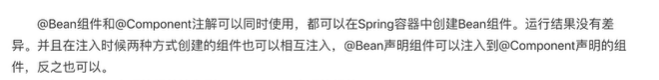 /*测试 @Component 声明的Bean组件注入到@Bean声明的组件中*/
