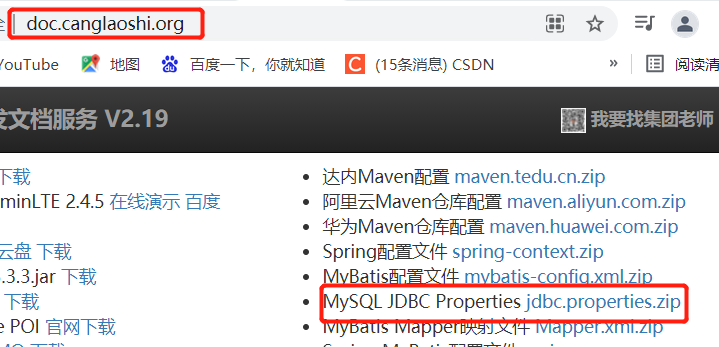第一步:resources包下编辑数据库配置文件,可从下图网址下载,解压后复制粘贴进resources包下
