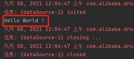 }第三步:TestCase包下测试,结果是: Hello World ! 说明连接数据库成功并查询数据成功