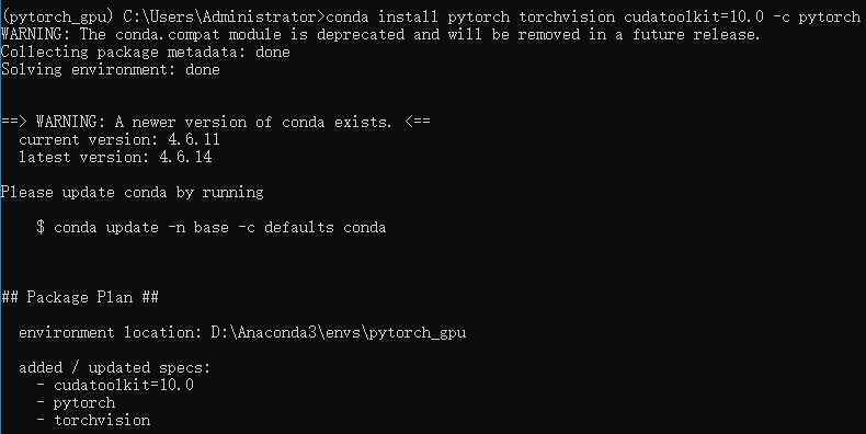 conda install pytorch torchvision cudatoolkit=10.0 -c pytorch