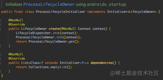 可很简单,就四个文件,先是初始化类 ProcessLifecycleInitializer: