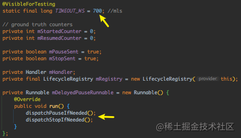 延时700ms,然后去验证是否处于后台,然后 LifecycleRegistry 转发生命周期事件,完。简单点就是封装了 Application.ActivityLifecycleCallbacks,并提供了一个全局的 LifecycleOwner。