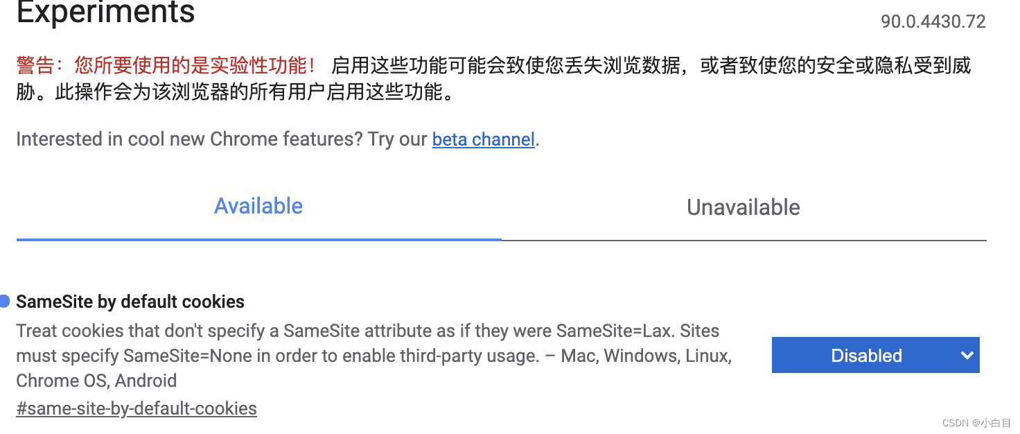 1. 在chrome://flags里搜索'same-site', 将下图 ‘SameSite by default cookies’ 项设置为disabled,重启chrome即可: