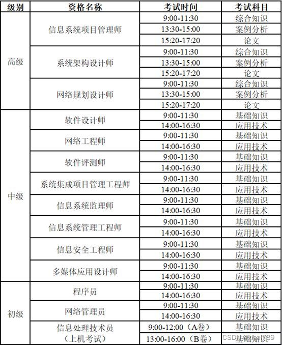 - 软考初级:程序员、网络管理员、信息处理技术员。