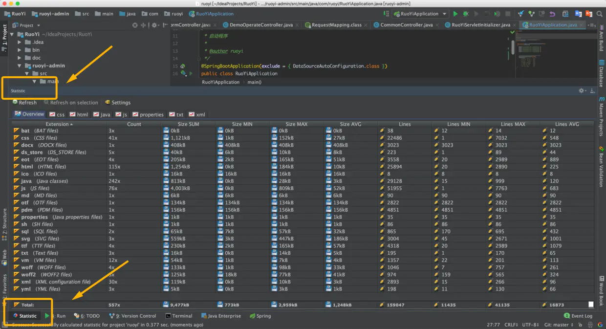 Statistic则是一款可以做项目全局代码统计信息的小插件:
