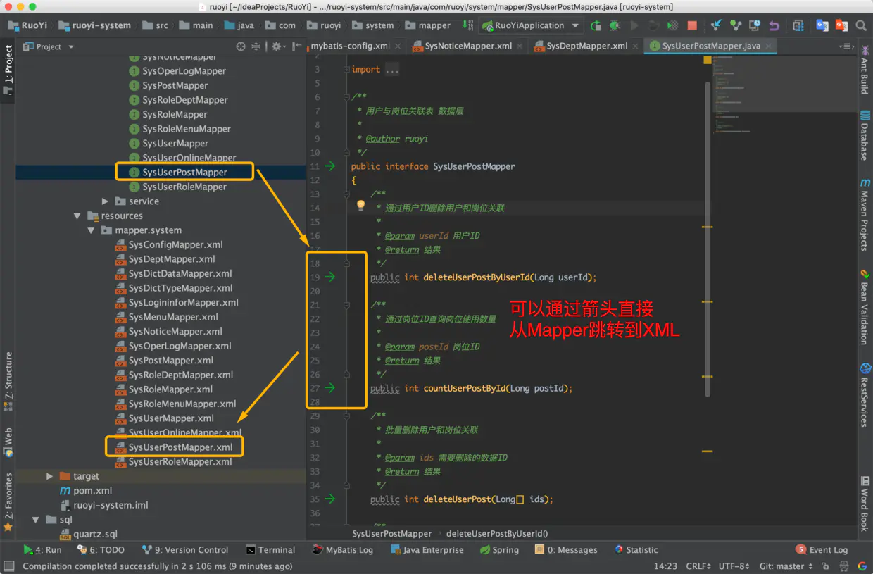 除了全局搜索以外,如何方便地在Mybatis的mapper Java接口方法和mapper XML文件之间来回切换?