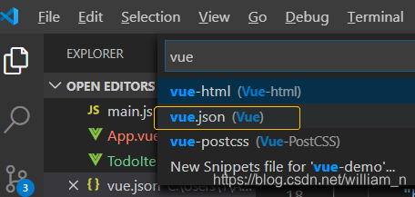 b. 输入vue, 选择vue.json
