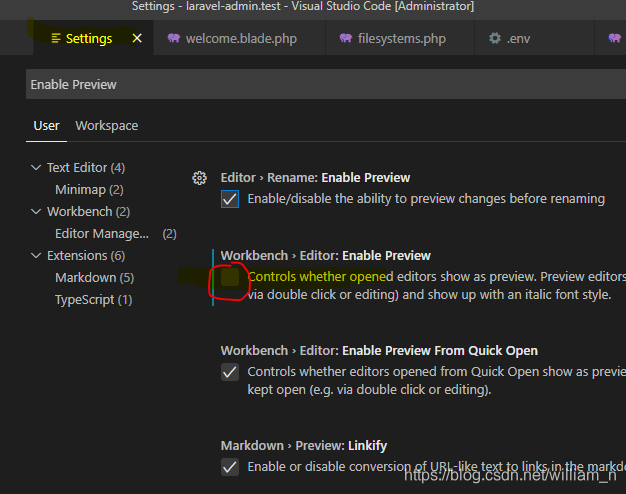 2.8 vscode 打开新文件覆盖旧文件 // 20200802 周日解决办法: settings-> Workbench->Editor Management 里去掉Enable Preview 的勾选项[第二项即可], 此时单击的文件都会被保留.