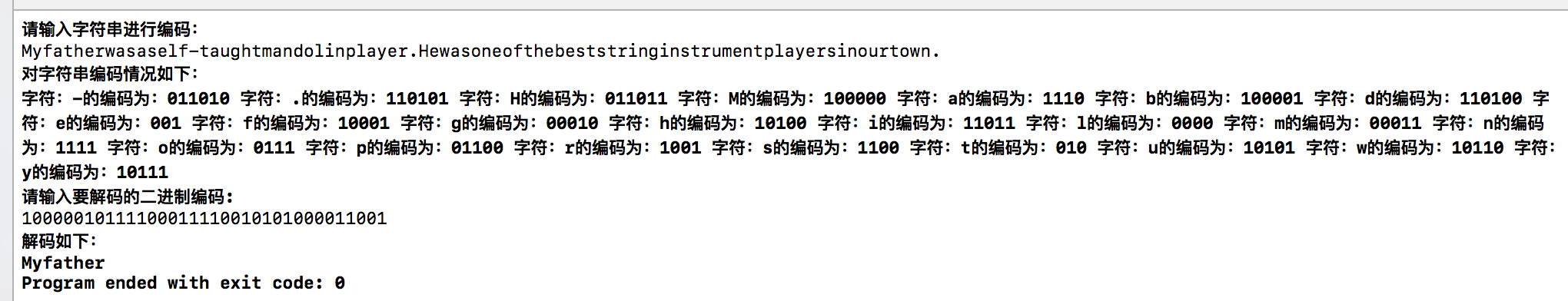 如果最后遍历完所有编码,但是还是没有把所有编码解码成功,说明编码中有误,输出“解码出错!”。
