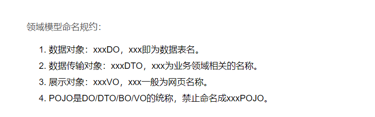 - POJO( Plain Ordinary Java Object):在本手册中, POJO专指只有setter/getter/toString的简单类,包括DO/DTO/BO/VO等。