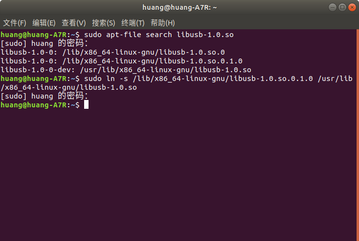 sudo ln -s 源文件 目标文件sudo ln -s /lib/x86_64-linux-gnu/libusb-1.0.so.0.1.0 /usr/lib/x86_64-linux-gnu/libusb-1.0.so