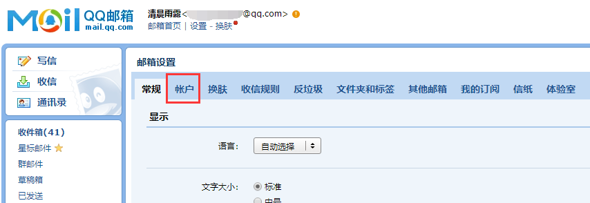 (2)进入邮箱设置页面,切换到“账户”tab页