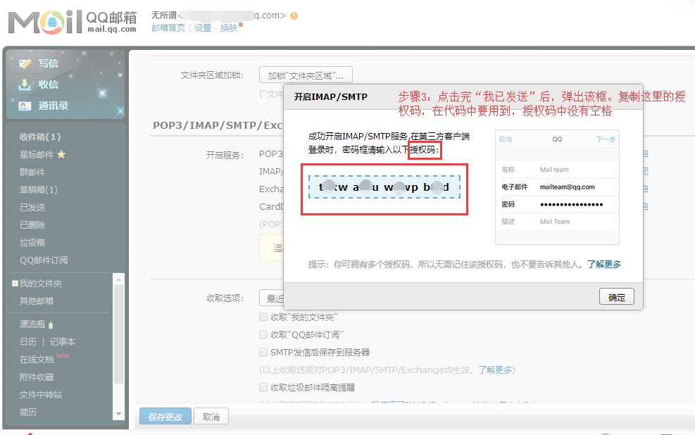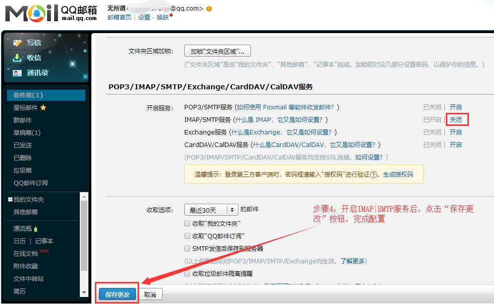 2、准备开通了IMAP/SMTP服务的邮箱一个,用于发送邮件。