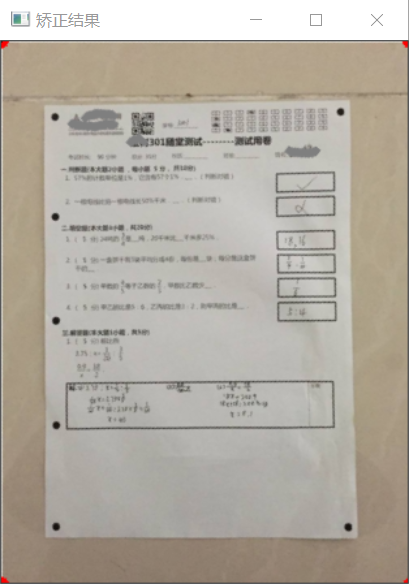 - 针对边缘比较明显的图像,使用基于轮廓提取的矫正算法。