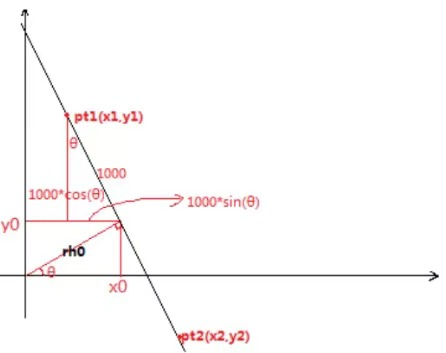 pt2.x = cvRound(x0 - 1000 * (-b));