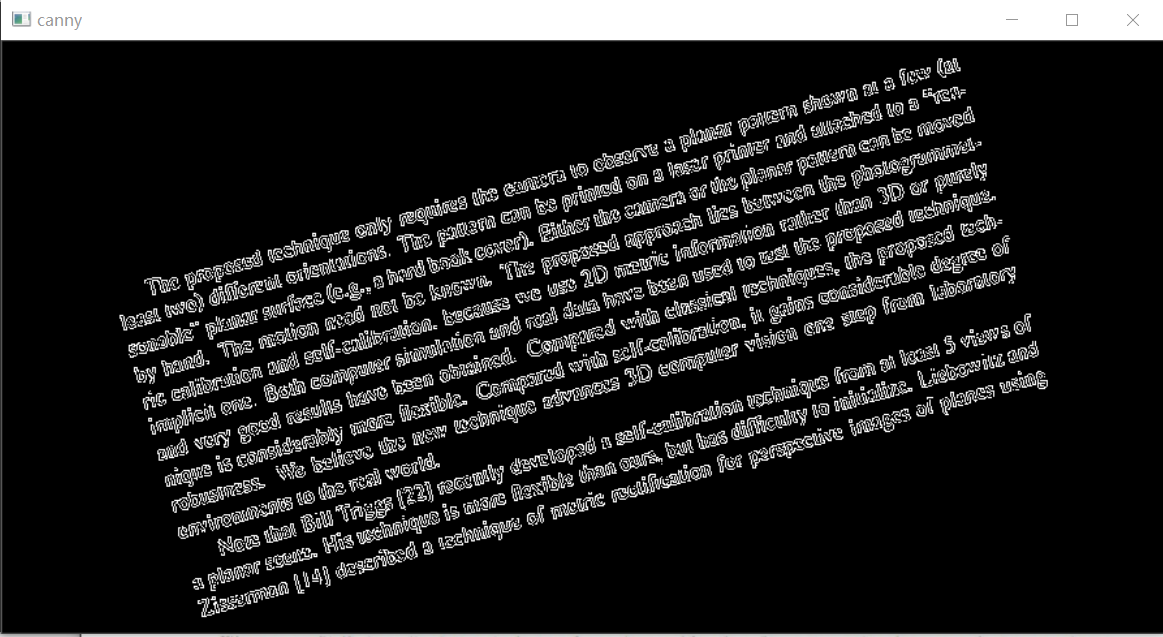 - 针对边缘不明显,但是排列整齐的文本图像,使用了基于霍夫直线探测的矫正算法。