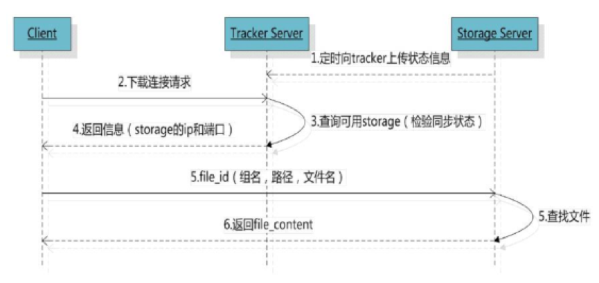2. 当客户端向Tracker Server发送下载请求时,Tracker Server就会查询storage Server(检测同步状态),查询一个Storage Server的IP和端口号来返回给客户端