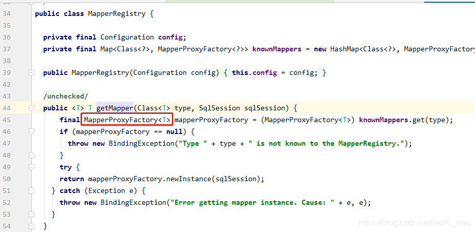 你会发现实际上是从configuration中获取一个mapper的对象出来。具体mapper怎么注册到configuration中的,请自行查看我前面关于configuration中的文章。