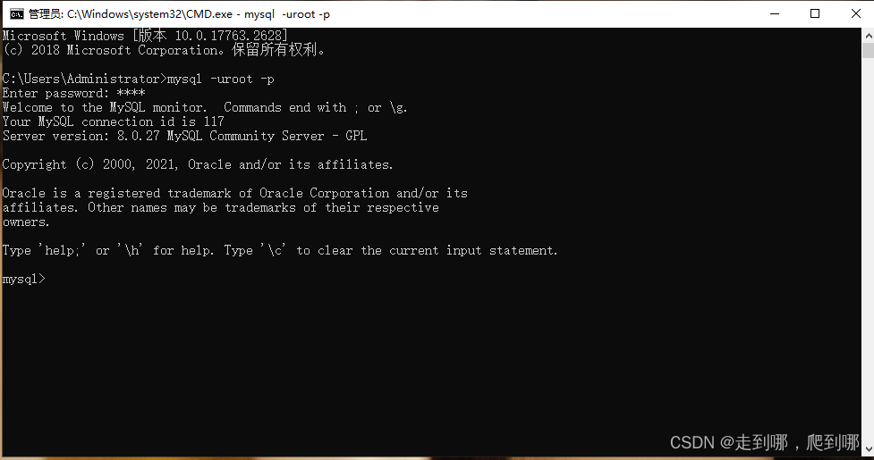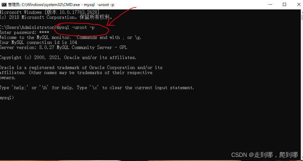 3.1 打开dos命令窗口,登录:mysql -uroot -p