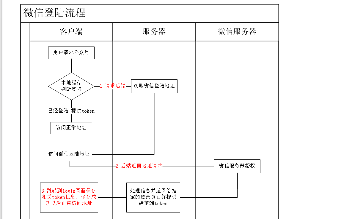 客户端判断token是否存在,token不存在则请求后端获取微信登陆地址