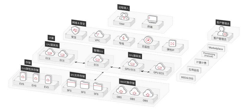 渲染业务是高性能计算的重要应用领域之一,针对不同的业务场景、渲染需求不尽相同,需要的计算需求也各自不同,华为高性能计算解决方案可以为企业提供端到端的计算服务。