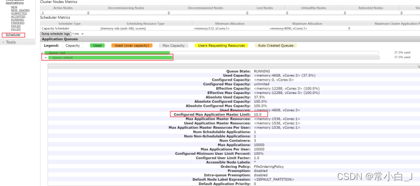 Configured Max Application Master Limit: 10.0