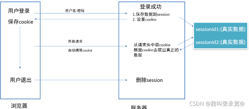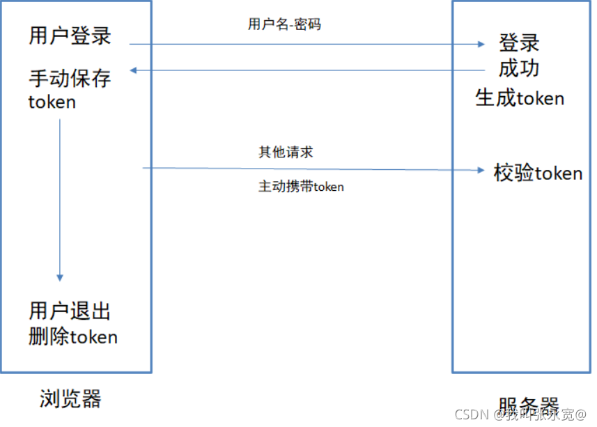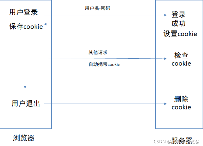 - 用户登录之后,得到能表明身份的凭证,下次请求或请求其他页面,带上这个凭证我就可以访问,不带凭证就不能访问,因为服务器不认识你