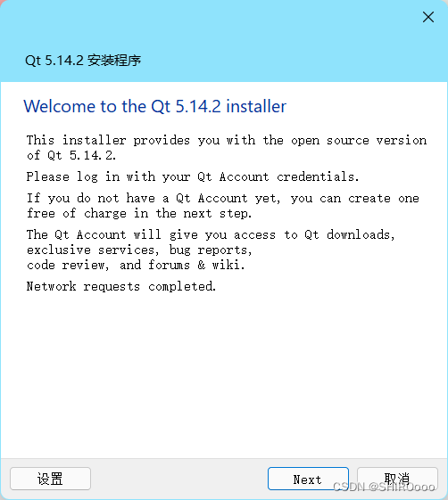 $ ./qt-opensource-linux-x64-5.14.2.run创建Qt账户获取授权 即可安装