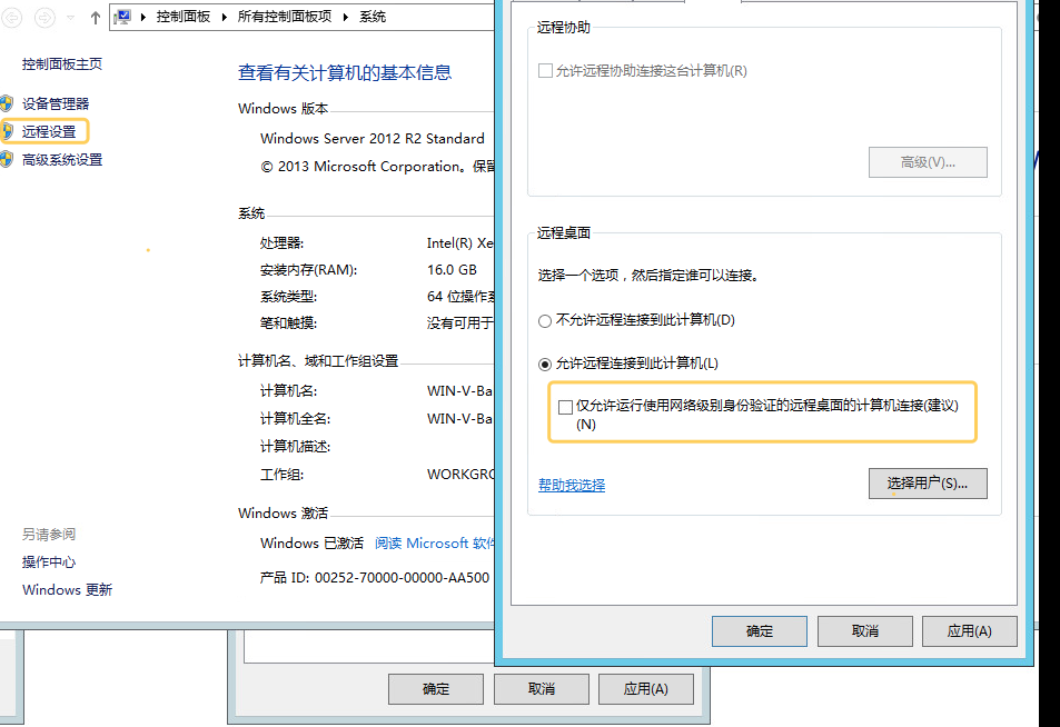 如图不要勾选“仅允许运行使用网络级别身份验证的远程桌面的计算机连接”