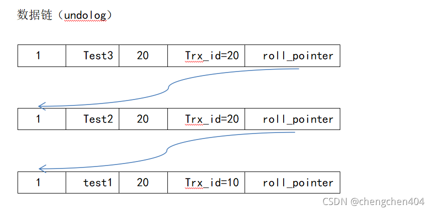 roll_pointer每次对哪条聚簇索引记录有修改的时候,都会把老版本写入undo日志中。这个roll_pointer就是存了一个指针,它指向这条聚簇索引记录的上一个版本的位置,通过它来获得上一个版本的记录信息。(注意插入操作的undo日志没有这个属性,因为它没有老版本)