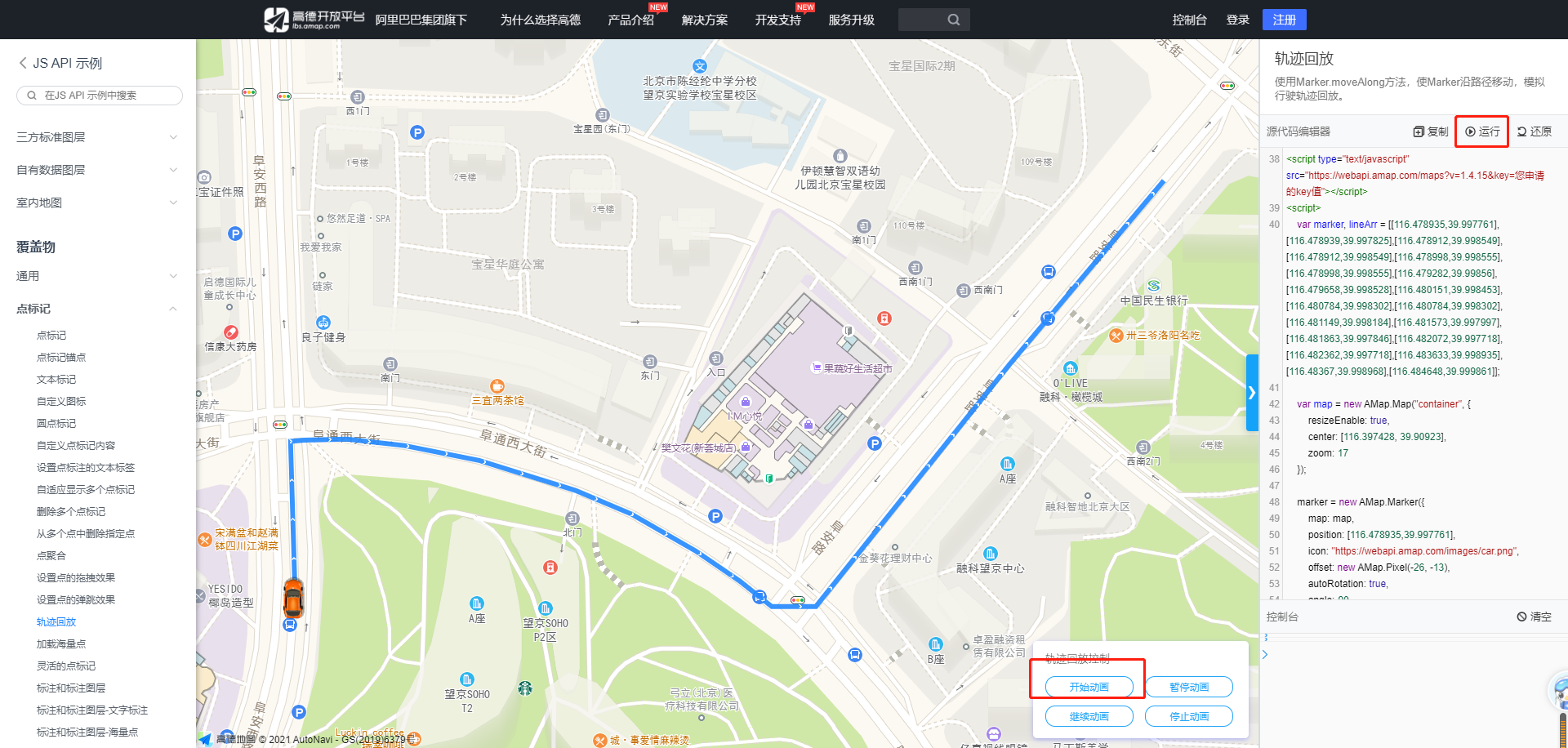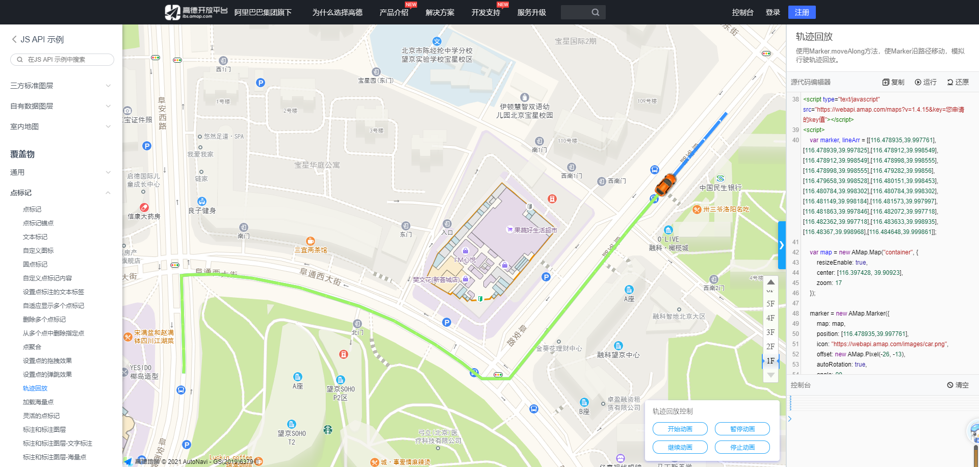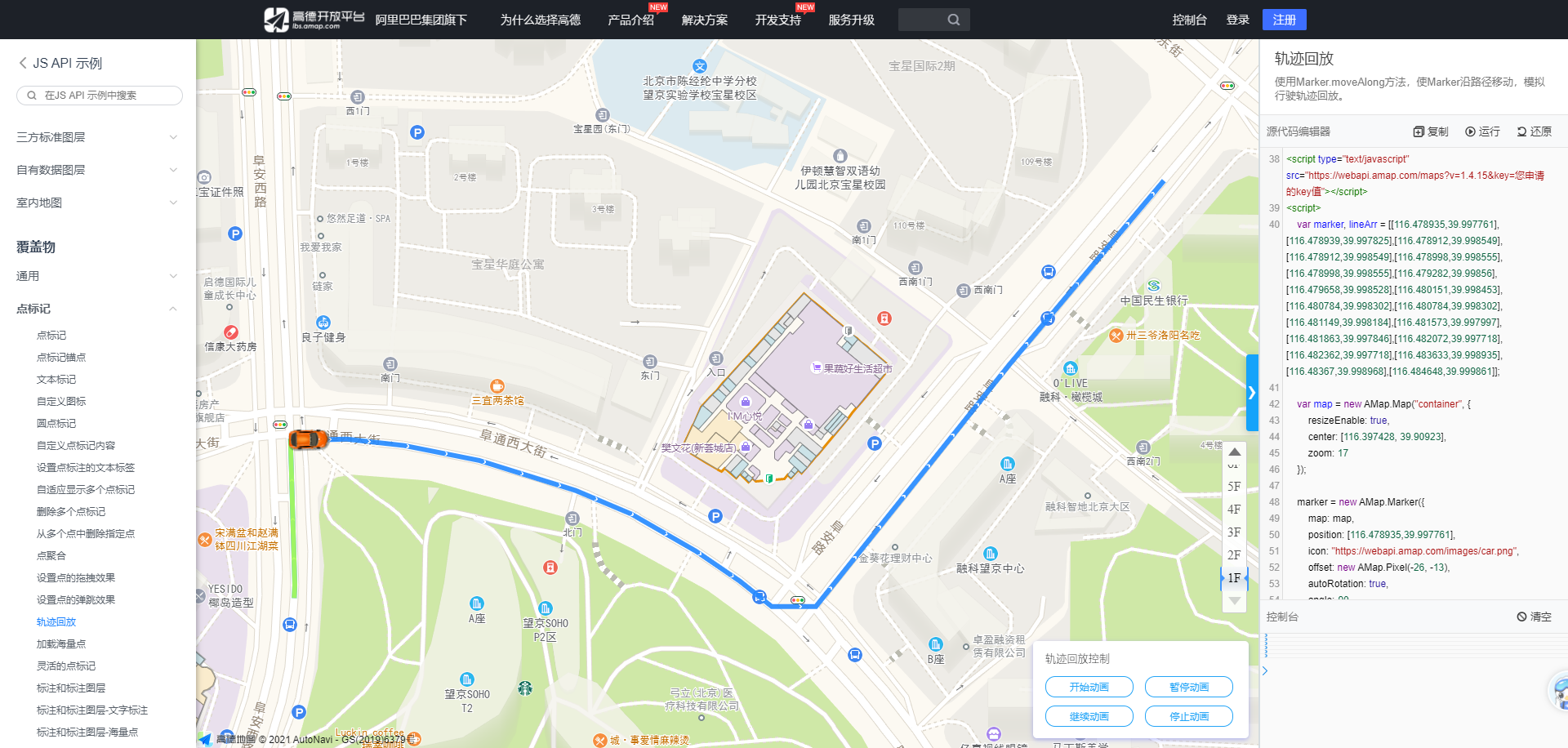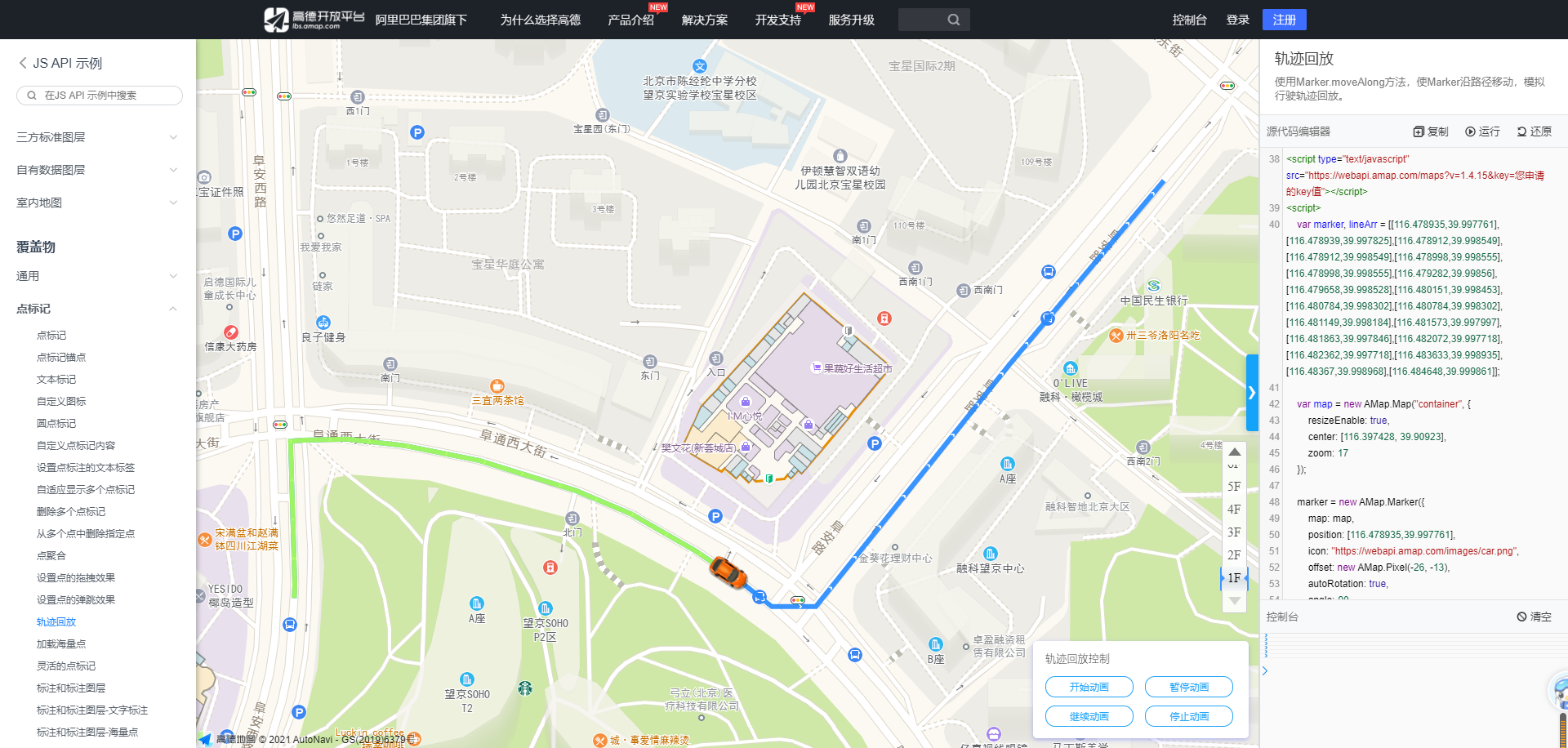 点击示例中心,进入界面后拉到底下找到轨迹回放